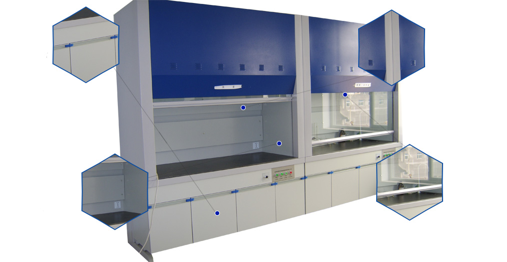 • 上下推拉防爆玻璃門,內(nèi)襯三級(jí)導(dǎo)流板,無(wú)死角排風(fēng)